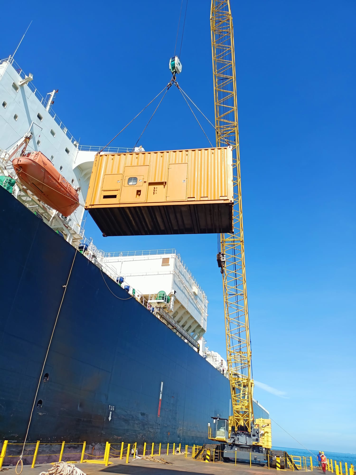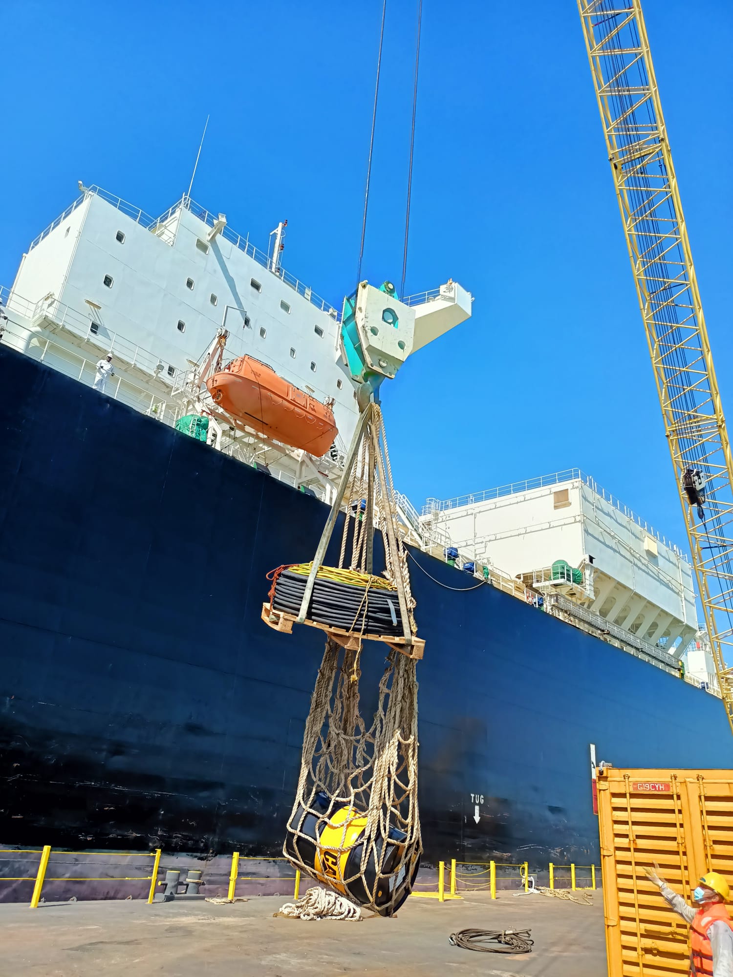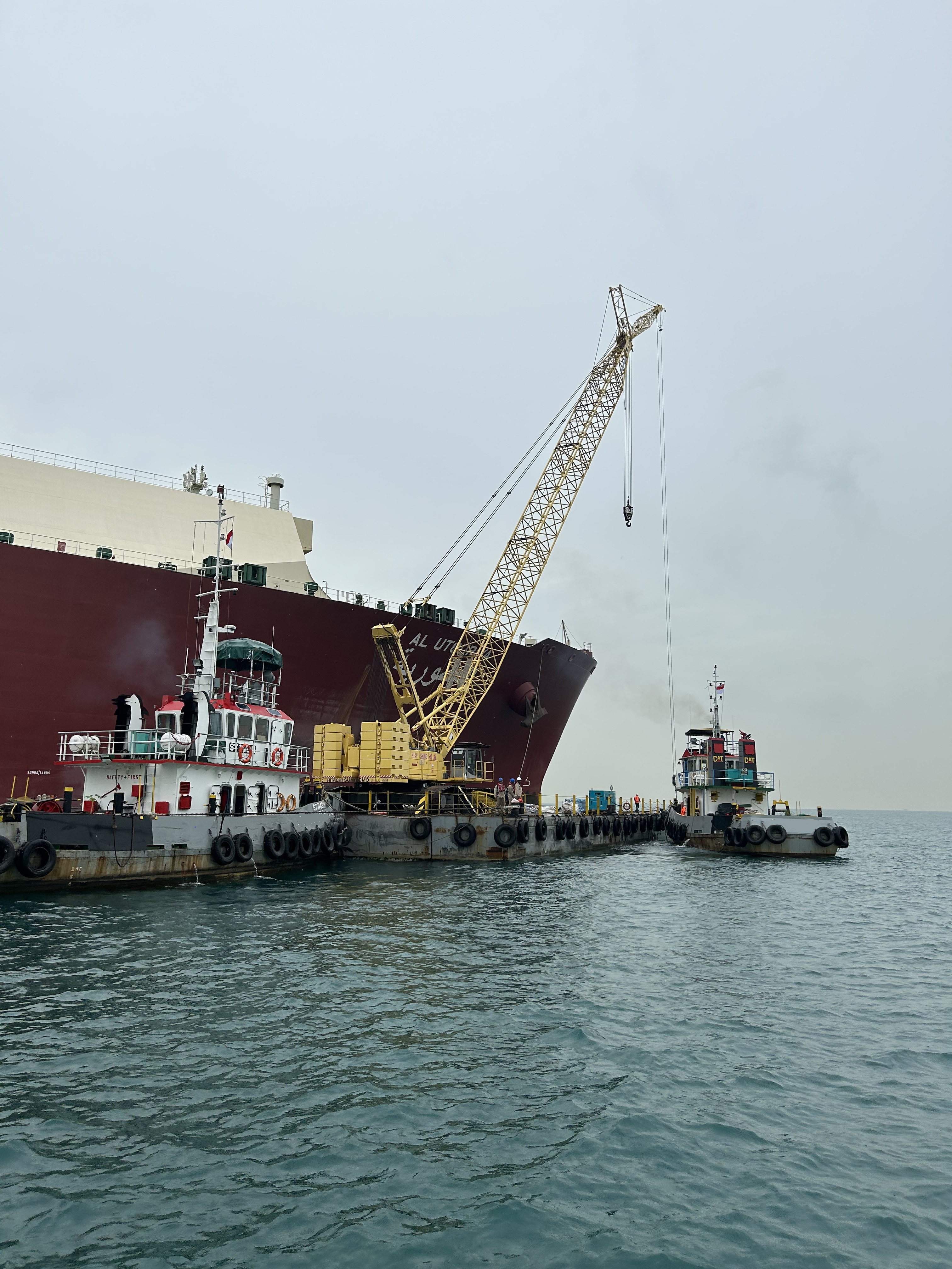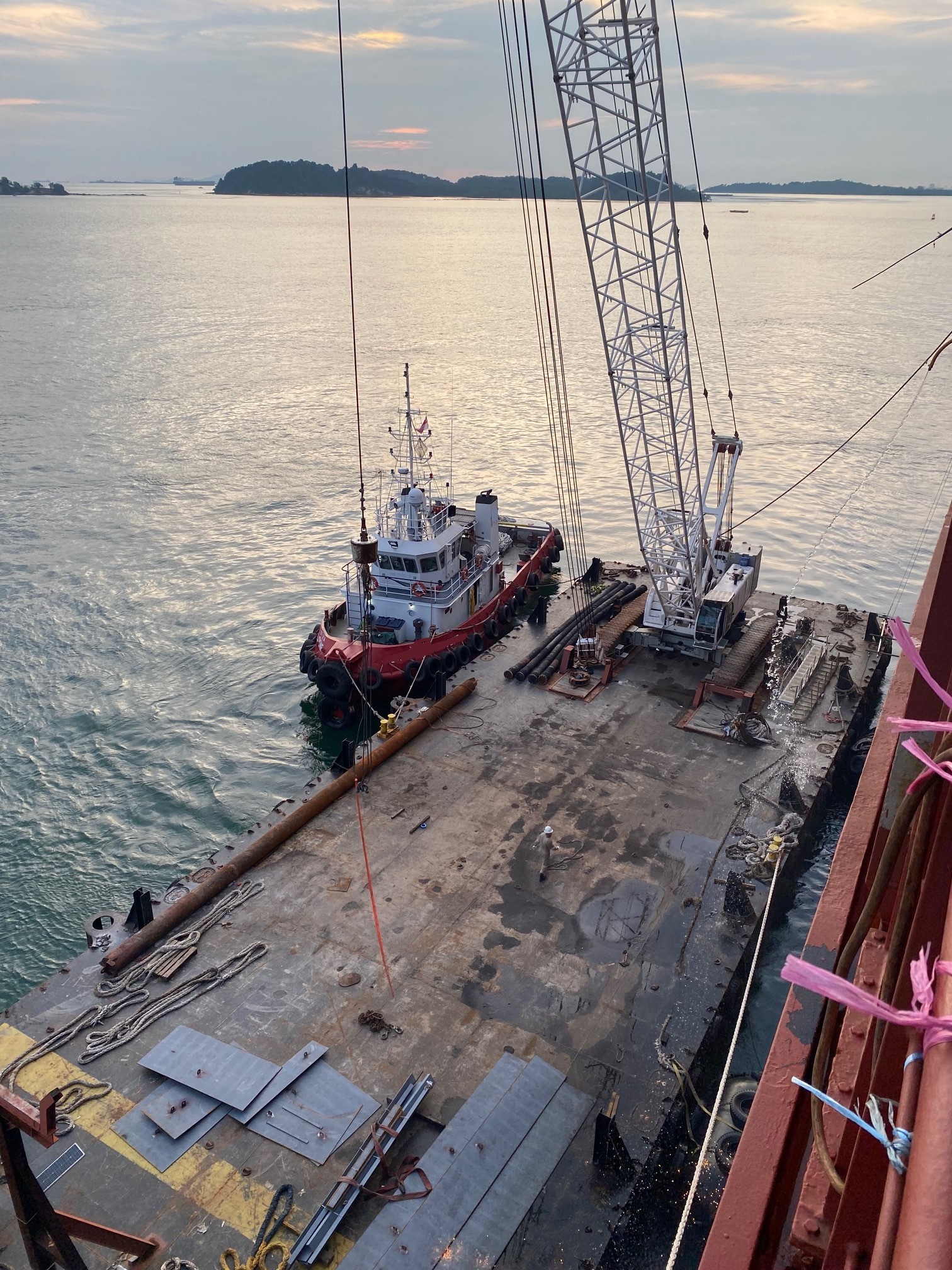Crane barge for anchor chain repair works